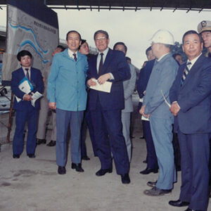 省主席時期的李登輝於台北縣關渡大橋工程區聽取簡報。-MOFA110064CC-2021-07-PH00140-045