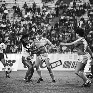 中華民國73年世界女子足球邀請賽-國外選手於比賽會場接受觀眾熱烈歡呼。-MOFA110064CC-2021-07-NE00121-046