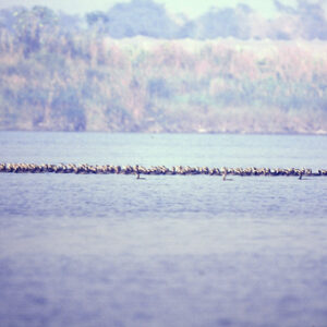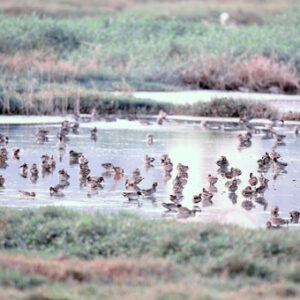 關渡自然公園為東亞澳遷移性水鳥與原生生物提供良好的棲息環境,圖為過境雁鴨科鳥類渡冬棲息於水塘區。-MOFA110064CC-2021-07-NE00162-601