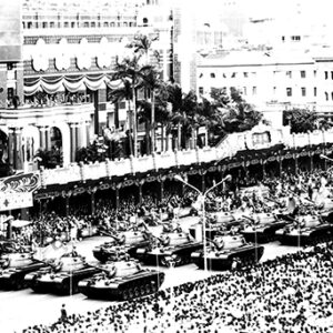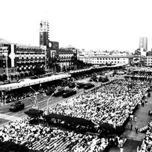 雙十國慶典禮-李登輝總統於閱兵台致詞後呼口號。-MOFA110064CC-2021-07-NE00116-078